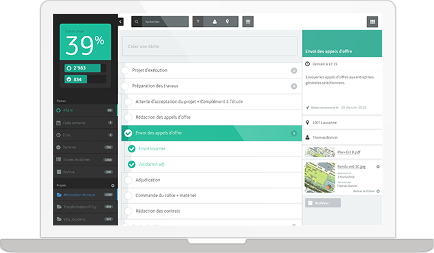 Même les meilleurs projets peuvent mal tourner. Avec Mintello, gérez vos projets, déléguez vos tâches et partagez vos fichiers où que vous soyez. Même sur le terrain avec une tablette ou un smartphone.
